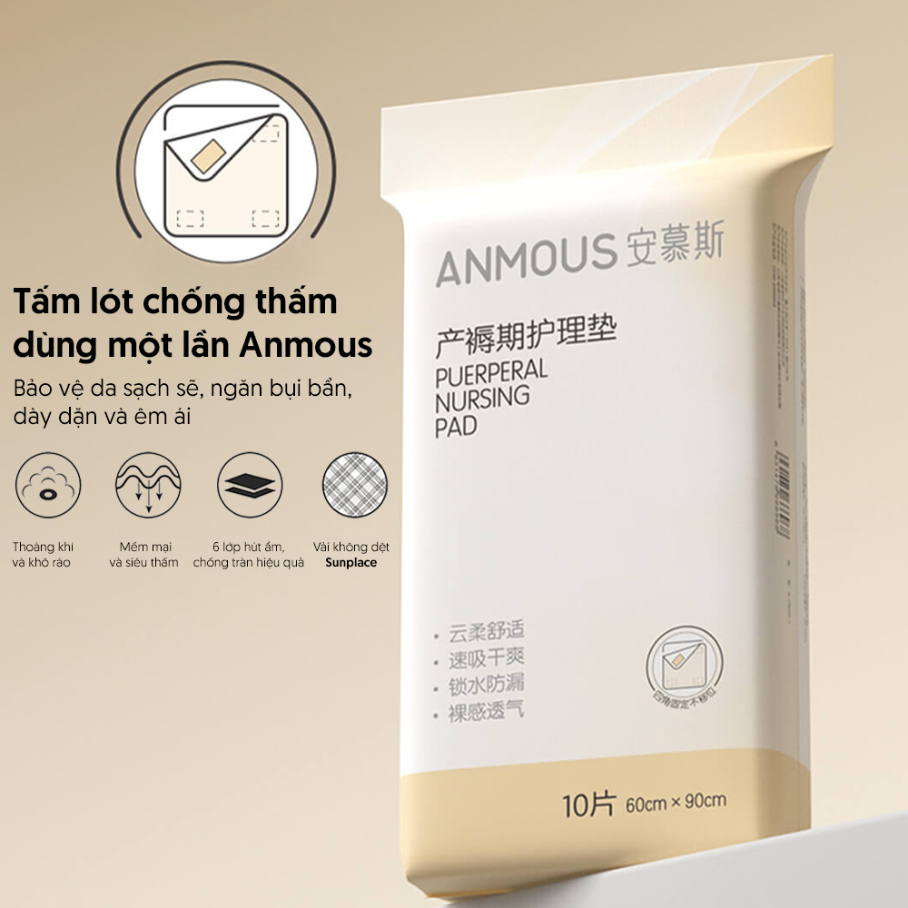 Tấm lót chống thấm dùng 1 lần Anmous – Siêu thấm hút, mềm mại, an toàn cho trẻ nhỏ, tiện lợi cho người lớn, mẹ sau sinh (10 miếng)