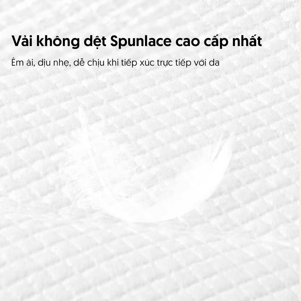• Sử dụng vải không dệt Spunlace cao cấp nhất, mềm mịn, bền chắc, không xơ rối và an toàn cho da.