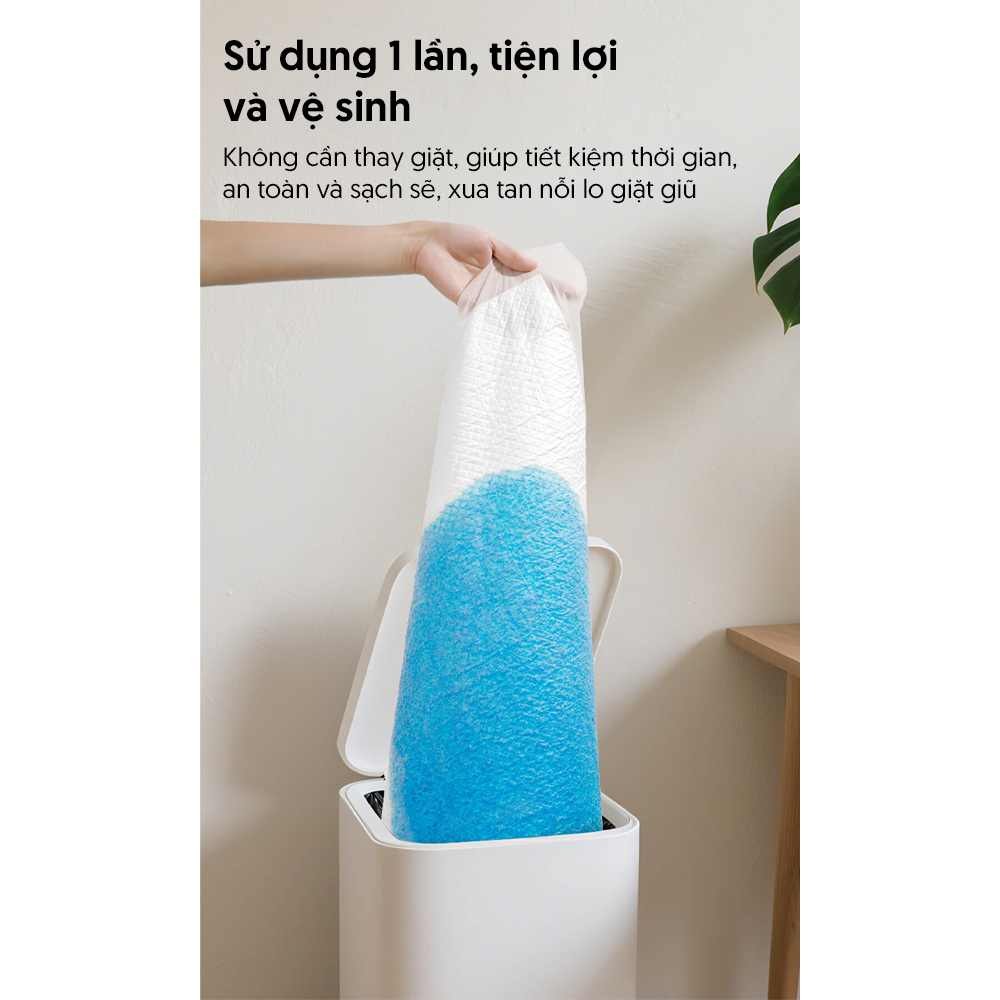 • Miếng lót chống thấm dùng một lần tiện lợi và vệ sinh, giúp tiết kiệm thời gian chăm sóc và giặt giũ.